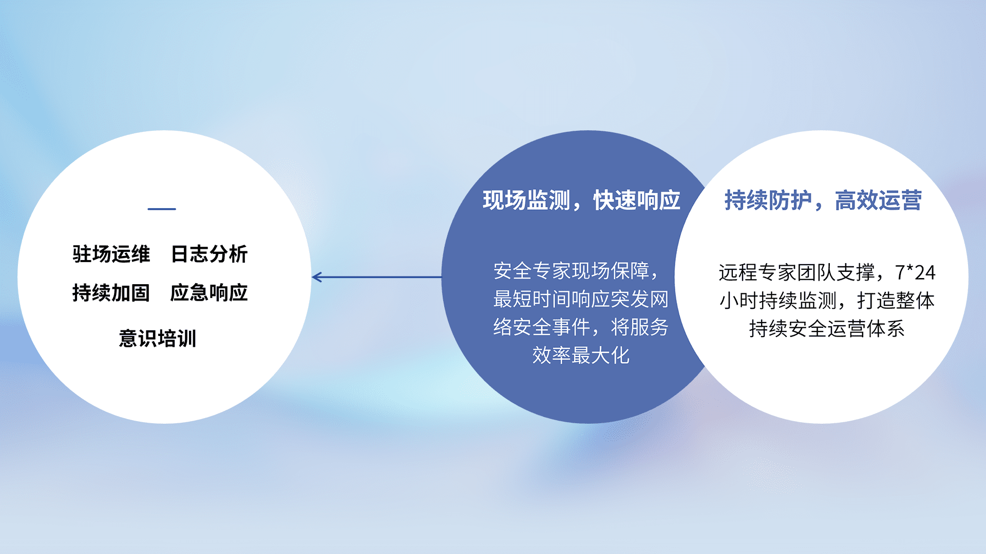 7X24小时持续监测安全事件,保持安全策略有效性,降低资产脆弱性风险,,,精准拦截黑客攻击,,,,减少被黑客利用的机会,,第一时间遏制,,,降低损失。。。。